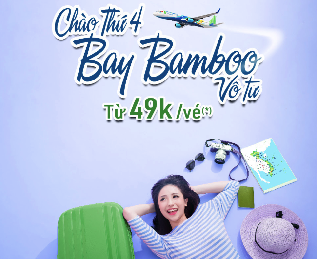 Chương trình siêu khuyến mãi “Chào thứ 4, Bay Bamboo vô tư” trong tuần này đã trở lại với sự “đổ bộ” của loạt vé máy bay có giá SIÊU HẤP DẪN – chỉ 49.000đ được Bamboo Airways mở bán cho nhiều chặng bay. Nào bạn còn chần chờ gì nữa mà không chớp ngay cơ hội bay giá rẻ cùng Bamboo Airways?